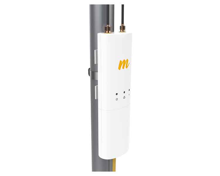 Connect to virtually any dual polarization antenna to custom engineer longer distance client links. The C5c has dual RP-SMA connectors for easy cabled antenna connectivity. It can be mounted to any pole via hose clamps or easily clipped onto antennas supporting compatible clip-on mounting bracket systems